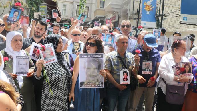 Basın açıklamasını okuyan İHD İstanbul Şube Başkanı Gülseren Yoleri, 744 haftadır gözaltında kaybedilenlerin akıbetinin açıklanması ve adaletin sağlanması için bir araya geldiklerini ifade etti. Yoleri, “Türkiye’de gözaltında kaybedilenlerin akıbetlerine ve faillerine dair resmi suskunluk iktidardan iktidara devreden bir gelenektir. Bu gelenek, kamu gücünü kullananların yurttaşa karşı suç işleme imtiyazını sürdürmeyi hedefler. Hukukun üstünlüğü yerine gücün ve keyfiliğin egemen olmasını hedefler” dedi.