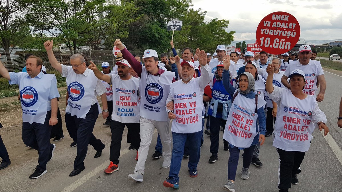 31 Mart yerel seçimlerinin ardından muhalefetin eline geçen belediyelerde, iktidar yanlısı Hak-İş ve Memur-Sen’e üye işçilerin istifa ve işten çıkarılma haberleri gelmeye başladı. 19 Nisan’da basın açıklaması yapan Hak-İş Genel Başkanı Mahmut Arslan, 5 bin 647 üyelerinin zorla sendikalarından istifa ettirildiğini söyledi ki bu iddia istifa eden Hak-İş üyeleri tarafından yalanlandı. İşçiler Hak İş’e bağlı sendikanın haklarına sahip çıkmadığını, bu nedenle istifa ettikleri söyledi. Bolu’da 700 Hak-İş üyesi işçinin işten çıkarıldığını söyleyen Arslan, 11 Haziran 2019’da Ankara’ya yürüyüş başlattı. Adı “emek ve adalet yürüyüşü” olan yürüyüşe 21 Haziran’da Memur-Sen de katıldı. Yürüyüşün 22 Haziran’da yani İstanbul seçiminden bir gün önce CHP Genel Merkezi önünde son bulacağını açıklandı.