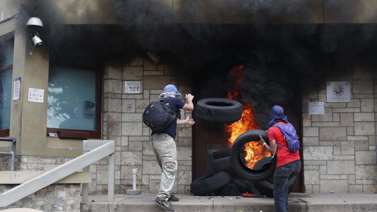 Fire on the doorstep of US Embassy. Reports say that the doors were lit on fire and there is smoke damage on the outside part. #Honduras https://t.co/wyCYDWPPiZ