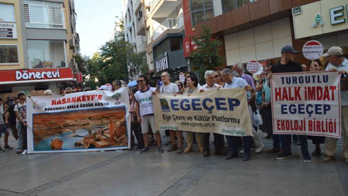 Ege Çevre Platformu (EGEÇEP) üyeleri, Ilısu Barajı’nın sularına gömülmek istenen 12 bin yıllık geçmişe sahip antik kent Hasankeyf’in korunması için çağrı yaptı. Alsancak semtinde bulunan Türkan Saylan Kültür Merkezi önünde yapılan açıklamaya Halkların Demokratik Partisi (HDP) yöneticileri ve birçok sivil toplum örgütü temsilcisi de destek verdi.