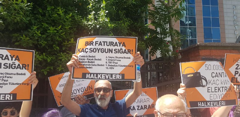 “Kaybettiniz, halkın sırtından inin! Zamlar geri alınsın” yazılı bir pankart açan Halkevciler enerjinin temel bir hak olduğunu belirterek, zamların acil olarak geri çekilmesini ve her haneye 230 kWh elektriğin parasız verilmesini istedi.