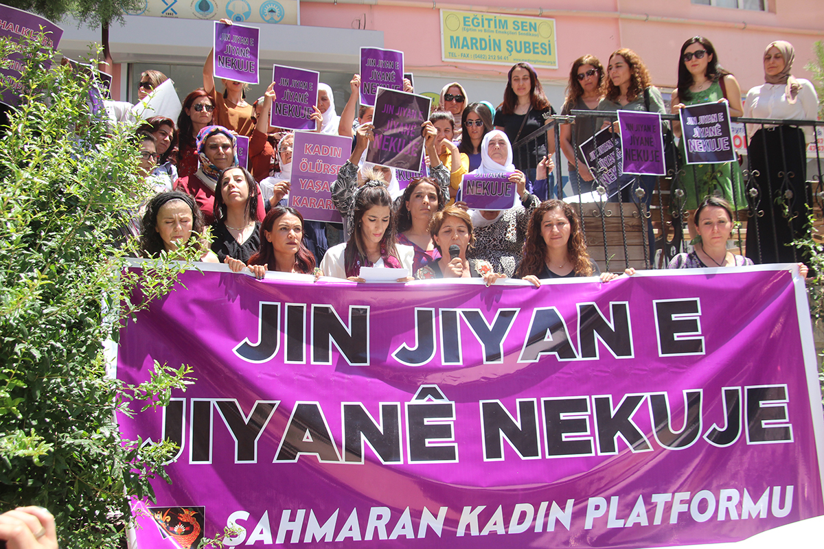 Mardin Şahmaran Kadın Platformu üyeleri, kadına yönelik şiddet, cinayet ve çocuk istismarı olaylarındaki cezasızlık politikalarına tepki göstererek, “Mazıdağı’nda cinsel istismar sanığı ile kadın cinayeti sanıklarının cezasız bırakılmasıyla ne amaçlandığını?” diye sordu