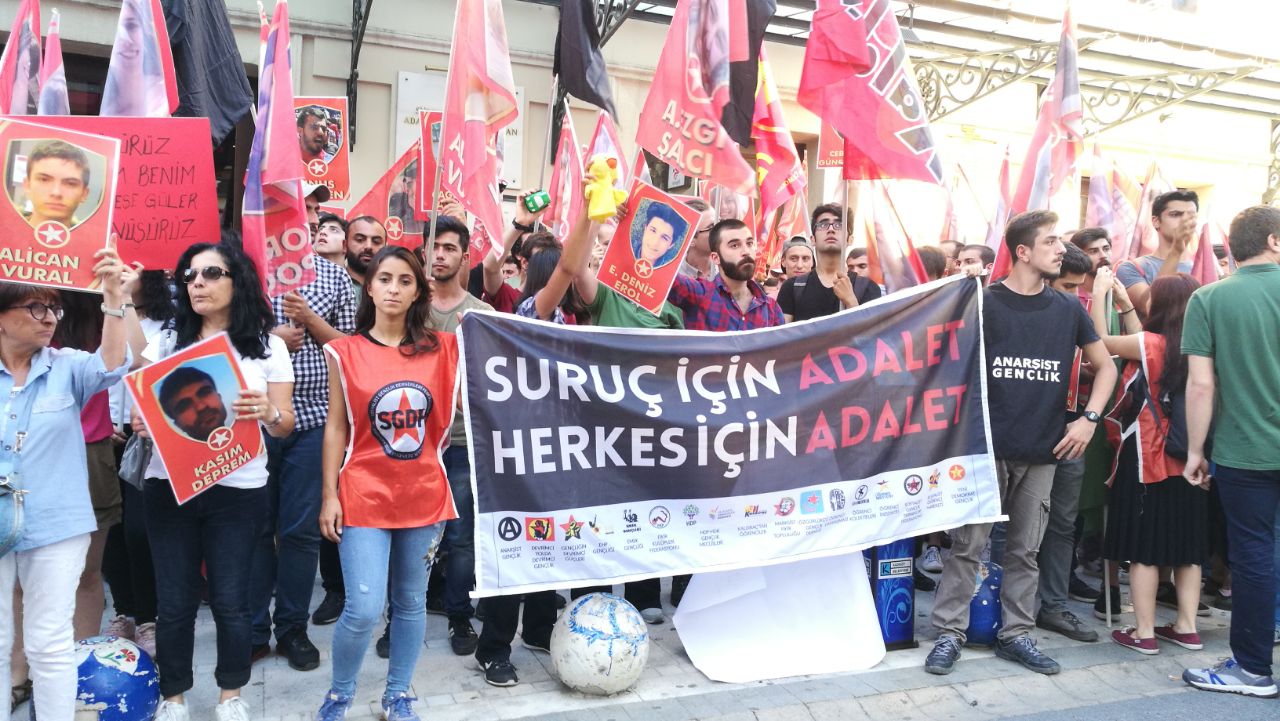 Tüm yasaklamalar ve engellemelere rağmen Suruç’ta ve tüm katliamlarda yitirdiklerimizi unutmayacak, unutturmayacağız.