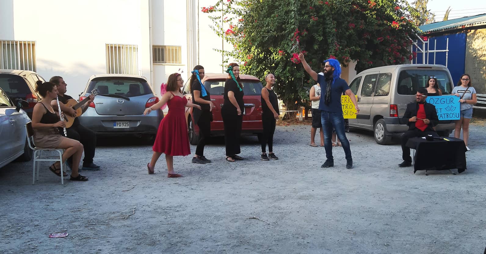 Baraka Tiyatro oyuncuları, Kıbrıs Devlet Tiyatroları önünde sergilediği bir oyun ile özerk ve özgür tiyatro talebini dile getirdi. Sol Anahtarı üyelerinin de yer aldığı müzikli oyunda, özgürce şarkı söyleyen gençler, “Yasakçı bir müdürün sansürüne ve baskısına maruz kaldıklarını ve sanatlarını özgürce yapamaz hale geldiklerini” ifade ettiler.
