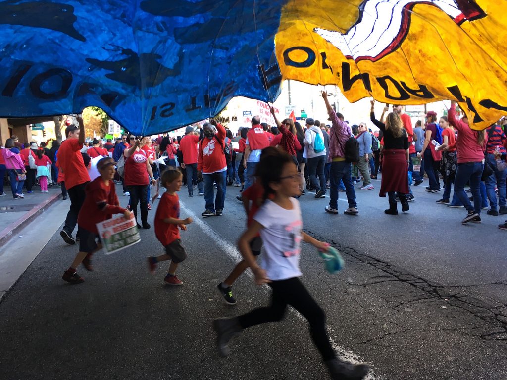 Los Angeleslı öğretmenler, “kırmızı eyaletler”deki öğretmen grevlerinin yarattığı dalgayı sürüyor, ki bu da emeğe, GOP’un [Ç.N. Grand Old Party- Cumhuriyetçi Parti] seçilmiş hizmetçilerinin taleplerini varlıklı elitlere kabul ettirmenin yolunun doğrudan eylemin gücü olduğunu öğretti. Toplumsal eylemi bilinçli bir şekilde kullanarak ve üyeleri harekete geçirmek için sendikanın iç yapılarını harekete geçirerek UTLA öyle güçlü bir toplumsal hareket yarattı ki LAUSD ve okul yönetim kurulunu kontrol eden işbirlikçi titanları uzlaşmaya zorladı.