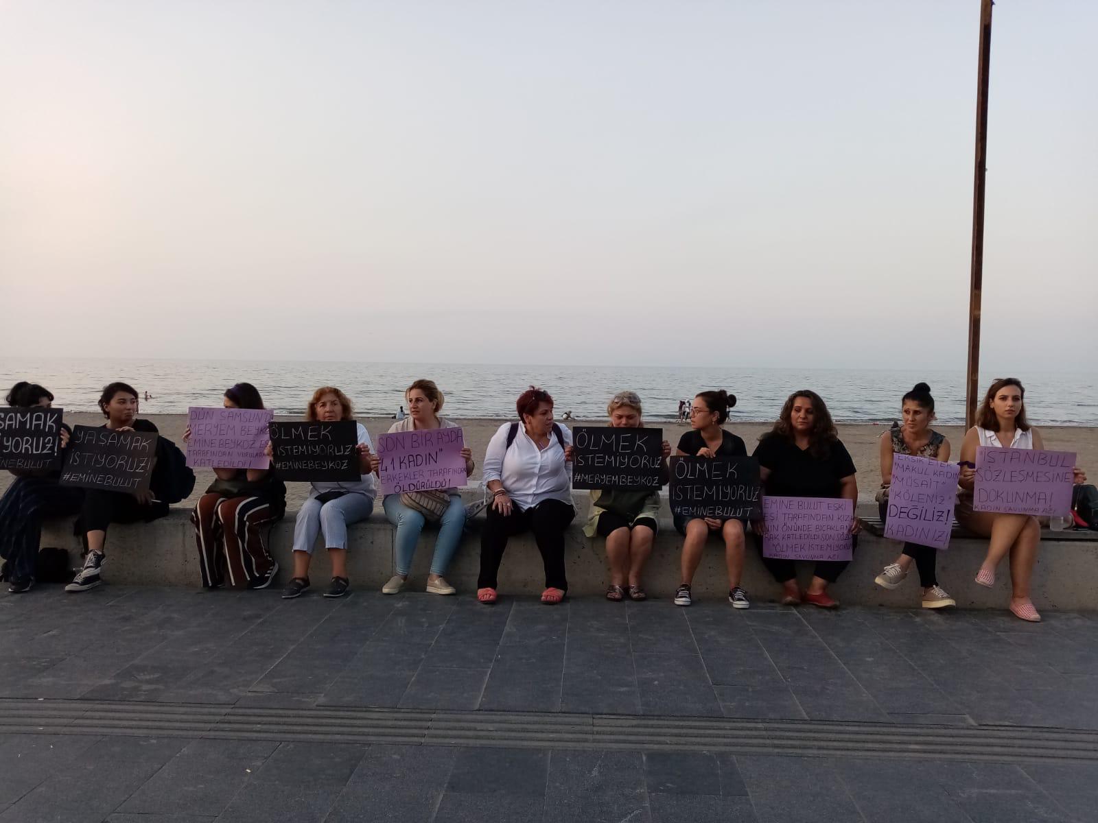 Kadın Savunma Ağı’nın çağrısıyla Atakum sahilinde bir araya gelen kadınlar, kadın cinayetlerine karşı nöbet tuttu,” İstanbul Sözleşmesi’ne, 6284 sayılı yasaya el uzatmayın” dedi