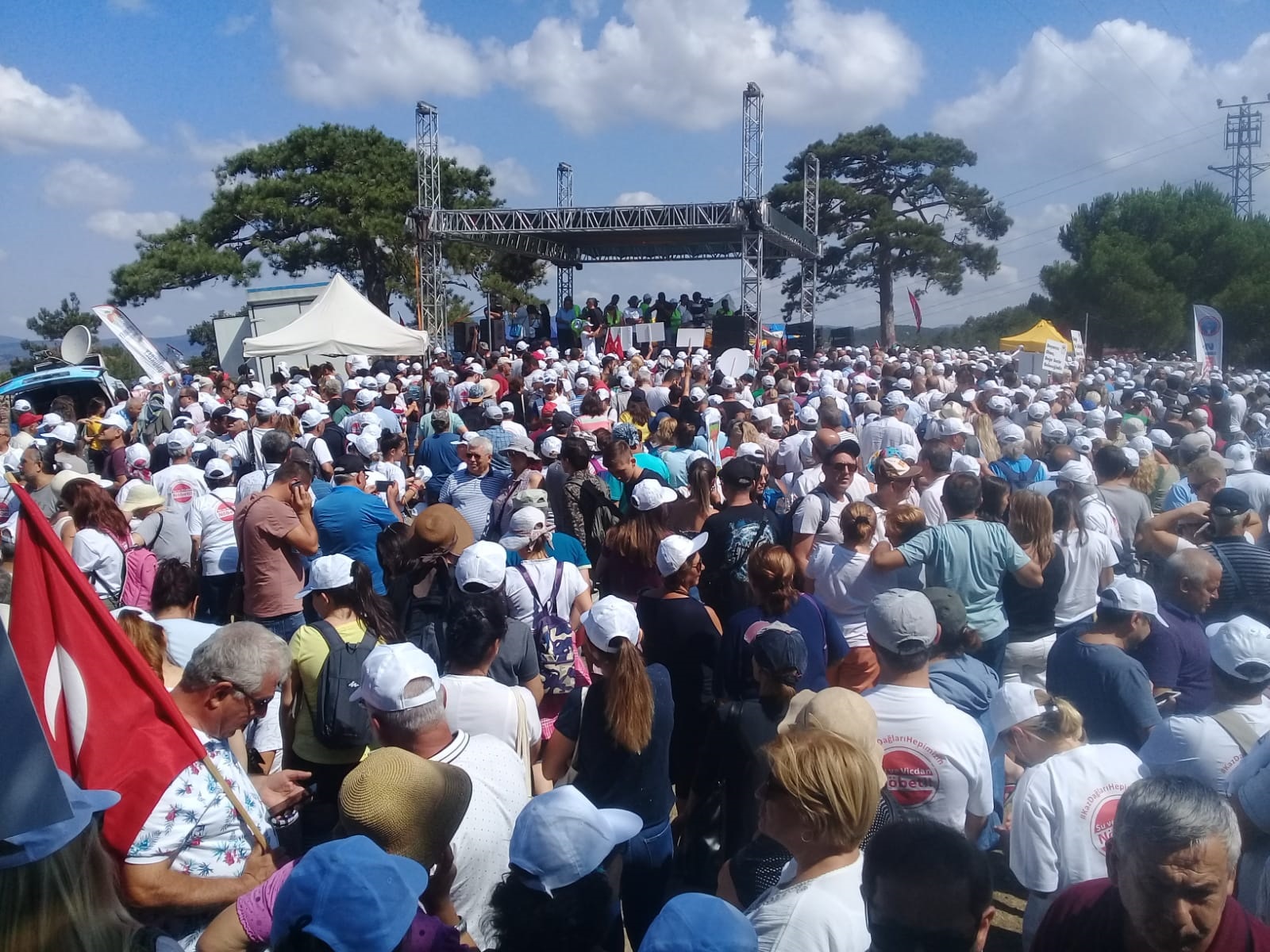 Türkiye’nin oksijen depolarından Kaz Dağları’ndaki altın madeni çalışmalarında katledilen onbinlerce ağaç için binler Kirazlı Köyü’nde buluştu