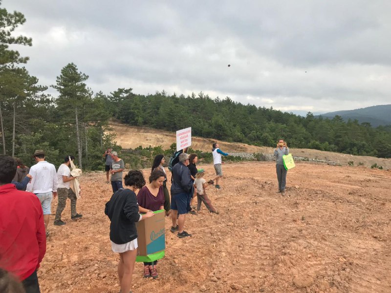 Kaz Dağları’nda, altın madeni faaliyetine karşı Su ve Vicdan Nöbeti’ne devam eden halk ağaç katliamının yaşandığı alana “tohum topları” attı