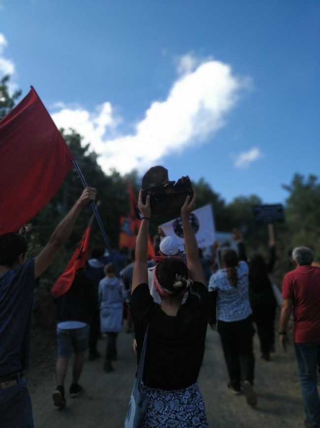 Su ve Vicdan nöbetçileri bugün (19 Ağustos) sabah saatlerinde altın madeni şantiyesinin önüne nöbet alanından yaptıkları yürüyüşte iki saatliğine şantiyeyi durdurdu.