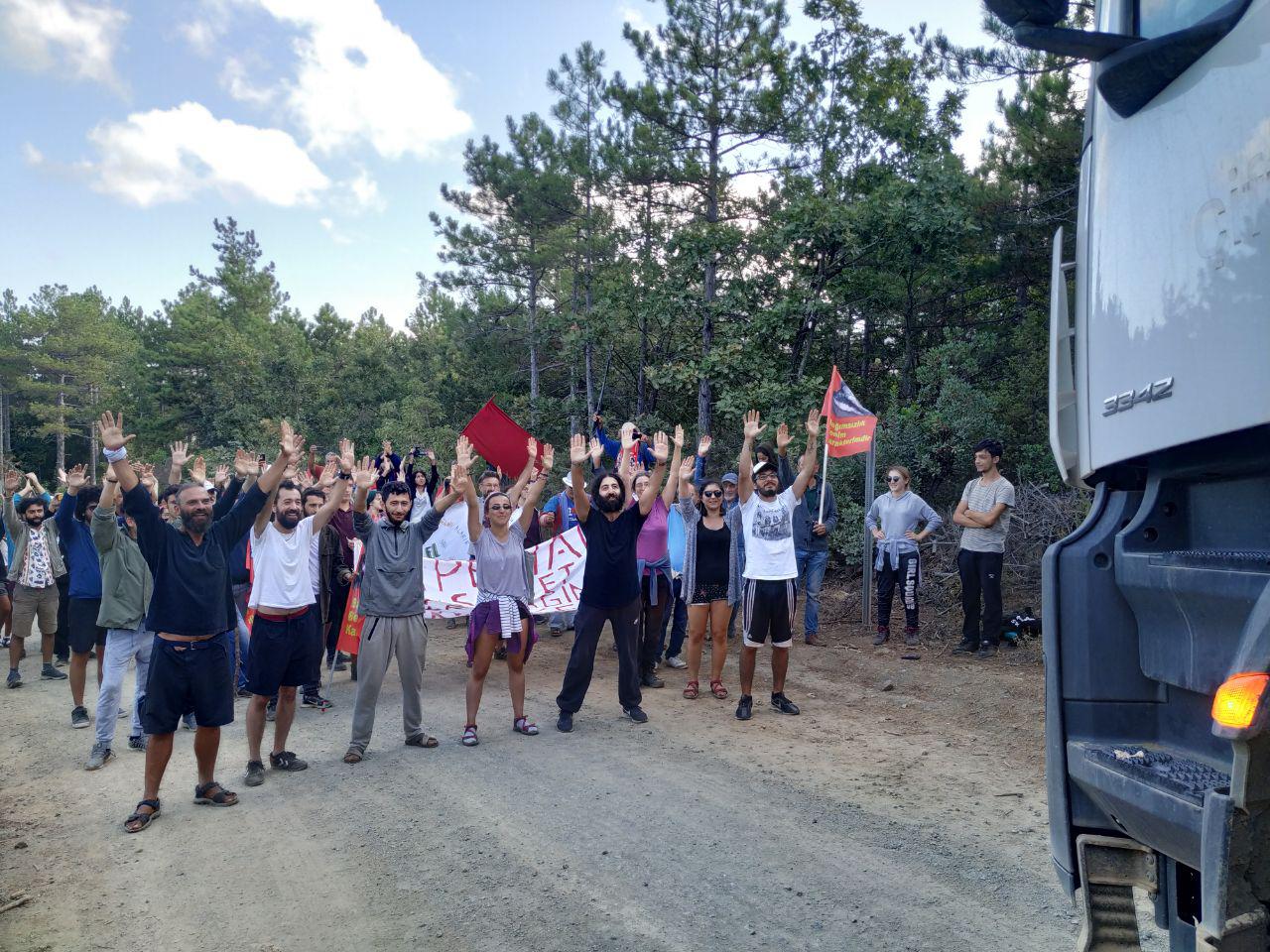 Kaz Dağlar’ında 25 gündür süren Su ve Vicdan Nöbeti’nde şantiye sahasına giren direnişçiler iş makinelerine engel oldu, şantiyeyi 2 saatliğine durdurdu