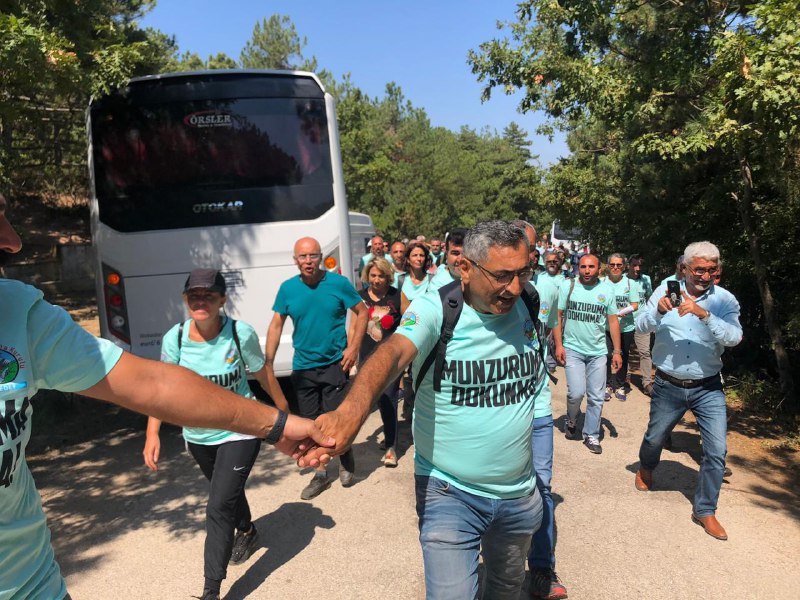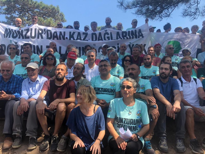 Aralarında Dersim Belediye Başkanı Fatih Mehmet Maçoğlu’nun da bulunduğu Munzur Koruma Kurulu gönüllüleri, Kaz Dağları’na giderek nöbete destek verdi, “Diren Kaz Dağları Munzur seninle” mesajını verdi