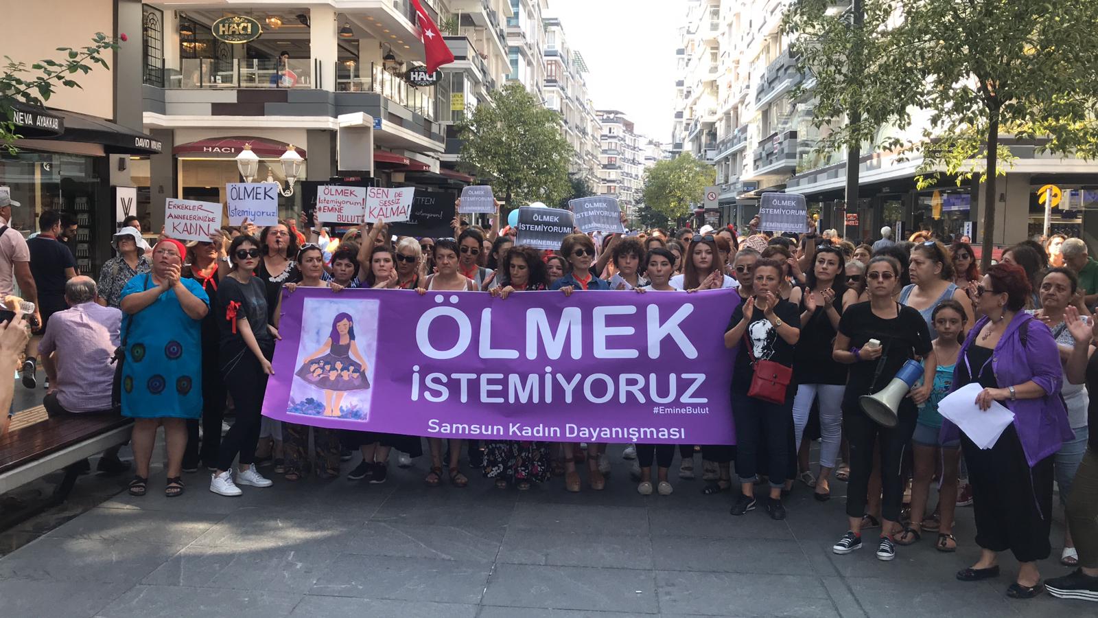 Kadınlar İstiklal Caddesi’nin sonunda basın açıklaması düzenledi. Samsun Kadın Dayanışması olarak yapılan açıklamada “Bu ülkede bir iç savaş var. Kadınlar, erkekler tarafından her gün, herkesin gözü önünde sistemli olarak öldürülüyor ama kadınlar ölmek istemiyor. Emine Bulut hepimizin gözünün önünde öldü. Son sözü ise ‘ölmek istemiyorum’ oldu” dendi.