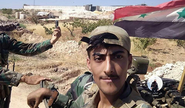 TSK gözlem noktasını arkasına alarak özçekim yapan Suriye askeri