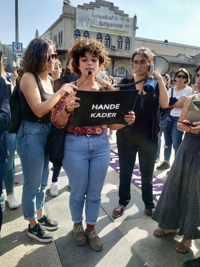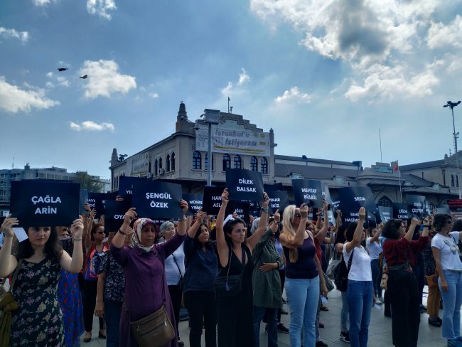 Kadıköy İskelesi’nde toplanan kadınlar, öldürülen 100 kadının hikâyesini anlatarak “Kadın Cinayetlerini Acil Önle” kampanyasını başlattı. Kadınlar herkesi, bu akşamdan itibaren her akşam saat 20.00’da kadın cinayetlerine karşı 5 dakika ses çıkarmaya çağırdı