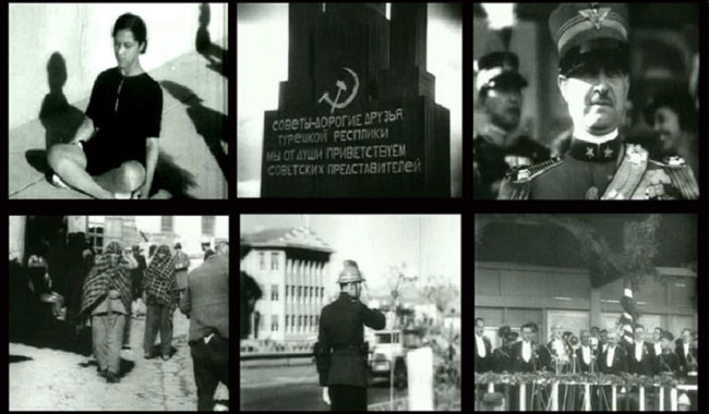 Sergey Yutkeviç’in belgeseli, Başbakan İsmet İnönü ile yapılan röportaj ile başlıyor. Arka planda görülen sadece ve sadece bozkır, uzayıp giden kıraç topraklar. İnönü, Cumhuriyet’in projelerini coşkuyla anlatır. Yutkeviç İnönü’den sonra kamerayı Ankara kentine çevirir, yapım halindeki başkente… Bozkırın dört bir yanından Ankara’ya ilerleyen izci kızlar, köylü kadınlar, gaziler, askerler… Hepsinin yüzü gülmektedir hepsi başarmış olmanın gururu içindedir, hepsi gelecekten umutludur. Ve sonra kamera Mustafa Kemal’e döner… Yutkeviç aynı filmde kamerasını bir de Moskova’ya çevirir. Ekim Devrimi’nin başkenti Moskova’nın okullarına, bale salonlarına çevirir. Orada her şey durmuş oturmuştur. Herkes işinde gücündedir. Devrim yerini çoktan evrime ya da her neyse ona bırakmıştır. Oysa Ankara devriminin coşkusu yaşamaya devam eder…