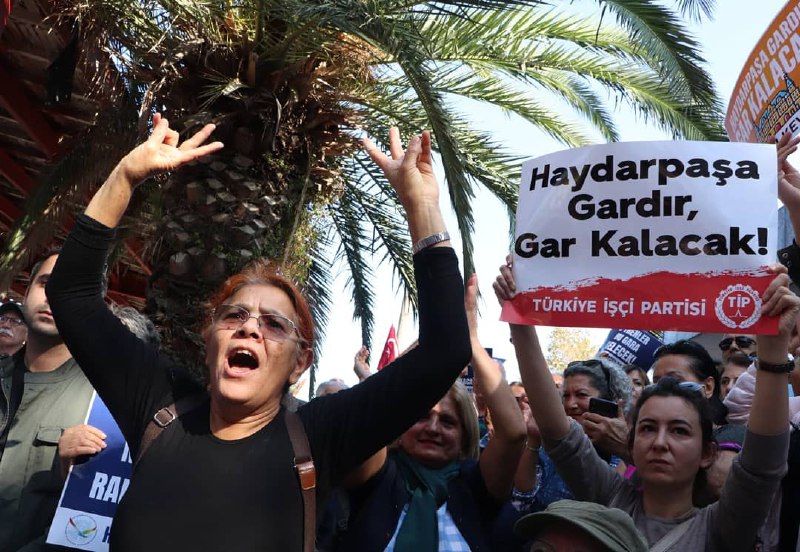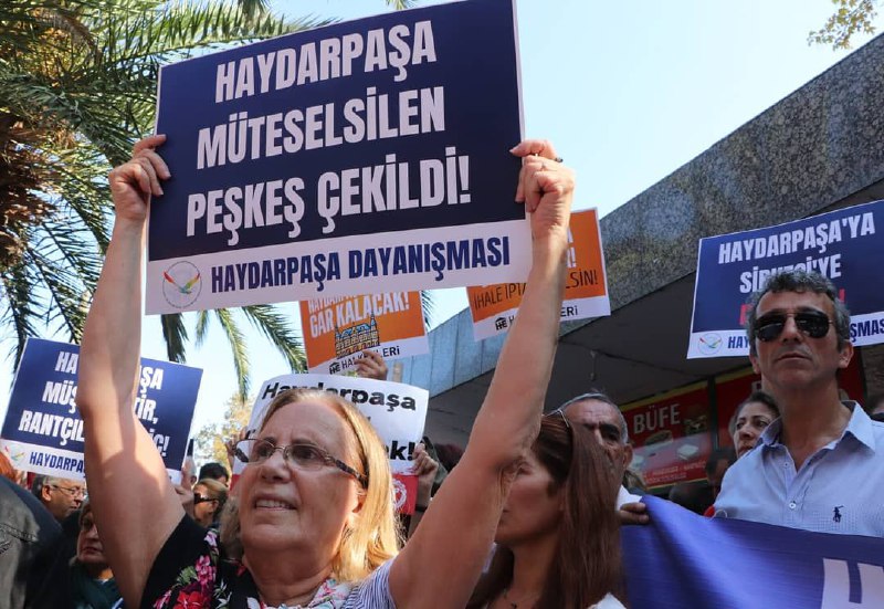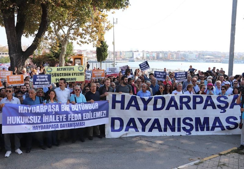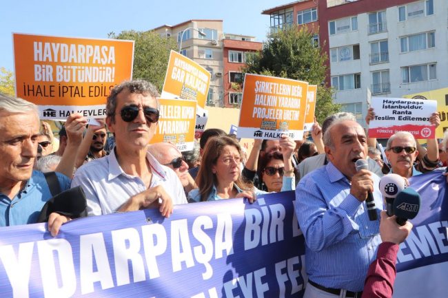 Haydarpaşa Dayanışması’nın çağrısıyla Haydarpaşa Garı’nın yanında bulunan Devlet Demir Yolları Lojistik Müdürlüğü önünde, Haydarpaşa ve Sirkeci Gar sahalarındaki yapıların ihale edilmesine karşı basın açıklama yapıldı. Yüzlerce kişi “İptal et iptal et ihaleyi iptal et” sloganlarıyla Haydarpaşa Garı’na yürüdü