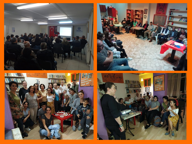 Yapılan etkinliklerde, Halkevleri şubelerinin bulunduğu mahallelerden başlayarak ortak bilinç oluşturmak, hazırlıkları ve önlemleri planlamak, mahalle afet planları çıkarmak, gönüllü ekipler oluşturmak için bir araya gelindi. Yaşadığımız kentte, mahallelerimiz hakkında alınacak kararlara katılmak ve denetlemek için yan yana gelmek; halkın ve doğanın yararı gözetilerek planlanmış, insanca yaşayacağımız bir kent için birlikte mücadele etme çağrısı yapıldı. Okmeydanı, Sarıyer, Bahçelievler, Kadıköy etkinliklerini gerçekleştirdi, planlarını çıkardı, gönüllü ekiplerin oluşturulduğu yerlerde ilçe belediyeleriyle de somut taleplerle görüşme yapılacak. Etkinlikler Beşiktaş, Avcılar ve Sarıgazi ilçeleri ile devam edecek.