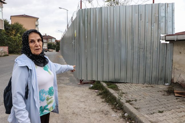 Mahalleli Emine Han: “Bir proje elimize geçmedi. Bize yalan söyleniyor. Biz İsrail’de miyiz, Suriye’de miyiz? Biz neden mağdur ediliyoruz. Hani burada kaldırım nerede? Burada kaldırım vardı, insanları kandırıp ellerinden imza aldılar. Bu rant mı kentsel dönüşüm mü? “
