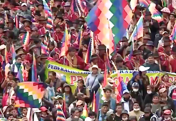 Bolivya’da binlerce yerli, darbe karşısında Evo Morales’e destek amacıyla La Paz’a yürüdü. Dün (14 Kasım) yapılan yürüyüşte ellerinde Wiphala ve Bolivya bayrakları ile sokağa çıkan binlerce yerli darbeyi ve kendilerine yönelen şiddeti protesto etti.