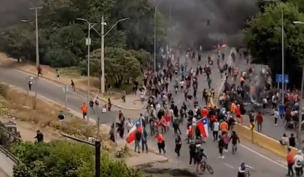 Şili halkı 12 Kasım’da San Antonio’da bulunan işkence merkezini yaktı. Halkın, Latin Amerika’nın en büyük işkence merkezi olarak bilinen Tejas Verdes adlı askeri karargaha giden yolları kapatarak barikat kurduğu görülüyor.