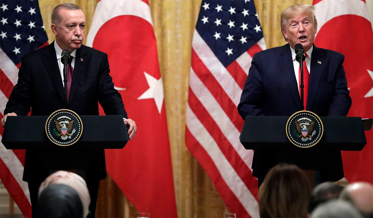 ABD Başkanı Donald Trump’ın daveti üzerine Washington’da bulunan Tayyip Erdoğan, Beyaz Saray’da ikili ve heyetler arası görüşmeler gerçekleştirdi. Ortak basın toplantısında ise Suriye ve S-400 konularına ilişkin açıklamalar ön plana çıktı, ancak taraflar görüşmelerin içeriğine dair pek renk vermedi. “Türkiye’nin Rusya’dan S-400 alması bizim için çok büyük zorluk oluşturuyor” diyen Trump çözüm için çalıştıklarını belirtti. Erdoğan da S-400 ve F-35 krizlerinin diyalogla çözülebileceğini belirtti, ayrıca “Teklif verilmesi durumunda Patriot’ları almak istediğimizi tekrar söyledim” ifadelerini kullandı. ABD’yle varılan mutabakata bağlı olduklarını belirten Erdoğan, YPG-QSD karşıtı sözlerini yinelerken, Trump “Kürtlerle ilişkimiz harika” dedi. Erdoğan, Trump’ın gönderdiği mektuplar için de “Bugün Sayın Başkan’a tekrar takdim ettim” ifadesini kullandı