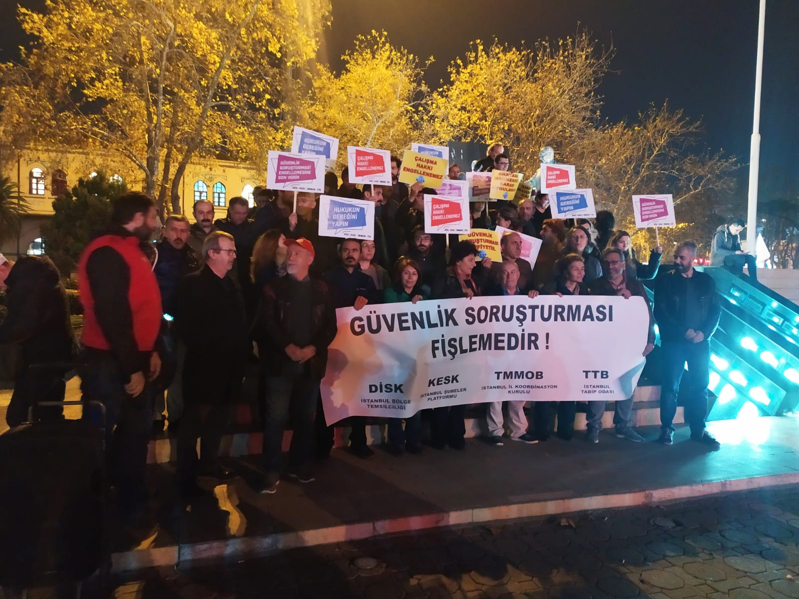 Eylemlerde sık sık “Çalışma hakkımız engellenemez”, “AKP’den hesabı emekçiler soracak” ve “Güvenlik soruşturmaları hukuksuzdur” sloganları atıldı.