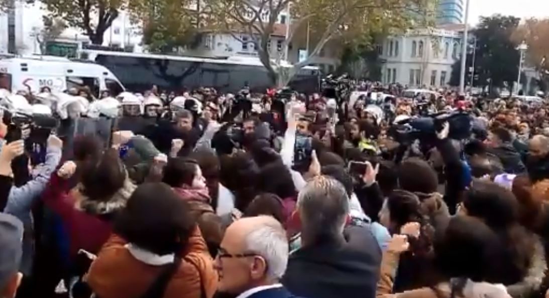 Following the women’s dance in Chile for freedom from rape and assaults, a group of women wanted to express their rage against the attacks on women in Turkey the same way. When the women started the performance, first the police shut down the music to prevent dancing. When the women insisted they had the constitutional rights and the performance was legal and legitimate the police took out their batons and dispersed the crowd