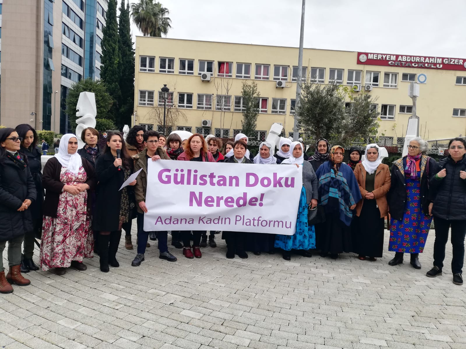 Bugün burada 5 Ocak 2020 tarihinden bu yana kendisinden haber alınamayan Munzur Üniversitesi Çocuk Gelişimi Bölümü ikinci sınıf öğrencisi Gülistan Doku’nun akıbetini sormak için toplanmış bulunuyor, bu kez de Adana’dan ‘’Gülistan Doku Nerede?’’ diye haykırıyor ve başta kadın örgütleri olmak üzere tüm Türkiye kamuoyunu Gülistan Nerede sorusunun cevabını aramaya ve bulmaya çağırıyoruz.
