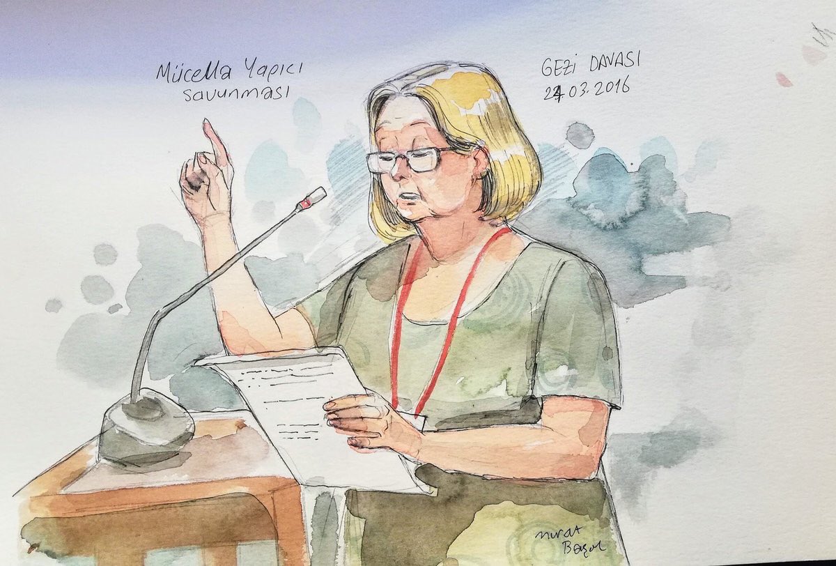 İstanbul 30. Ağır Ceza Mahkemesi’nde devam eden Gezi Davası’nda İstanbul Cumhuriyet Başsavcılığı mütalaasını yolladı. Mütalaada Osman Kavala ile tutuksuz yargılanan Yiğit Aksakoğlu ve Ayşe Mücella Yapıcı hakkında ağırlaştırılmış müebbet hapis talep edildi. Taksim Dayanışması sözcülerinden Mücella Yapıcı da bu ceza talebi karşısında, Nazım Hikmet’in “Cevap” şiirinin dizelerini paylaştı