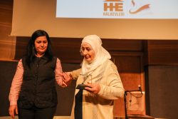 Meydan yasaklarına rağmen 778 haftadır kayıplarının akıbetini soran Cumartesi Anneleri adına Zübeyde Tepe, ödülünü Haziran İsyanı’nda yaşamını yitiren direnişçilerden Ahmet Atakan’ın annesi Emsal Atakan’ın elinden aldı. Tepe, salonu “özgür bir vatan” dileğiyle selamladı.