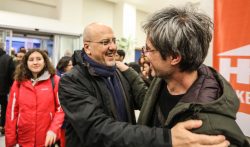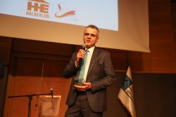 Halkın sağlıklı beslenme hakkını savunduğu ve kansere yol açan gıdalar hakkında bilgilendirici açıklamalar yaptığı için yargılanan Bülent Şık’a ödülünü Halk Bes Koop yönetim kurulundan Doğan Halis verdi.