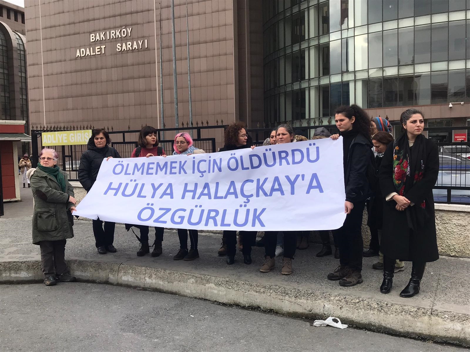 25 Ağustos 2019 tarihinden beri cezaevinde olan Halaçkay’ın daha önce görülen duruşmasında savcının ölümün “Meşru müdafaa” sonucu gerçekleştiğini söylemesine rağmen mahkeme heyeti kararı onamadı. Kadınlar, kendisine şiddet uygulayan erkeğe karşı özsavunma yaparak hayatta kalan ve yargılanan Hülya Halaçkay’ın karar duruşmasına çağırdı