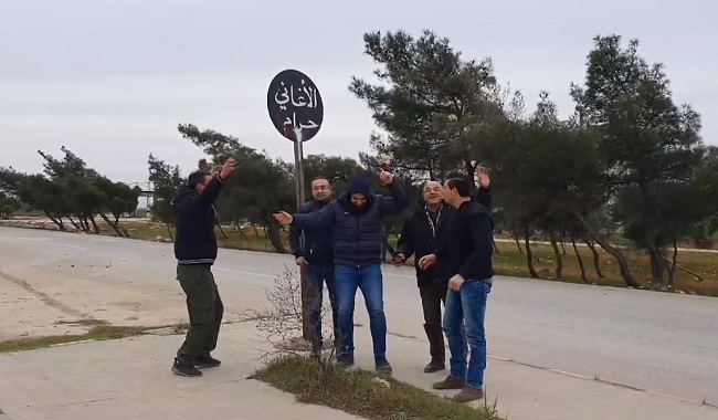 Suriyeliler, Halep-Şam (M5) otoyolu üzerinde cihatçıların koyduğu “Şarkılar haramdır” tabelası altında şarkı eşliğinde oynadı.