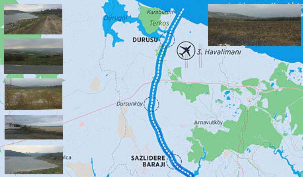 Kanal İstanbul ile birlikte sürgün edilecek yerleşim alanları ise Dursunköy, Baklalı ve Terkos. Kuzey Marmara Otoyolu, 3. Havalimanı ile birlikte arazi rantının, yandaş şirketlerin, Körfez sermayesinin çöktüğü bölgede fırtına öncesi sessizlik var gibi.
