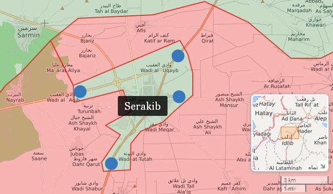 TSK, Suriye ordusunun Serakib’e ilerleyişini durdurmak için bu kentin çevresinde konuşlanmış ve dört kontrol noktası kurmuştu.