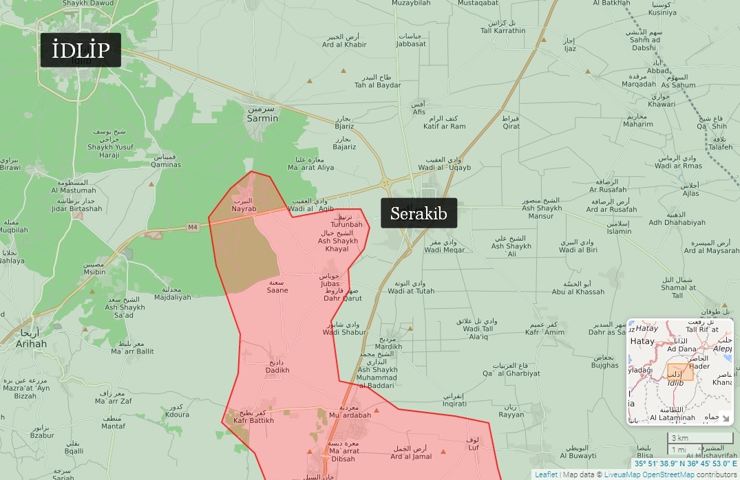 Suriye’nin resmi haber ajansı SANA da İdlip’in güneydoğu kırsalında operasyonunu sürdüren Suriye ordusu ve müttefiklerinin, dün geceden bu yana Serakib çevresindeki Cubas, San, Ternebe ve Neyrab köylerini kontrol altına aldığını bildirdi.