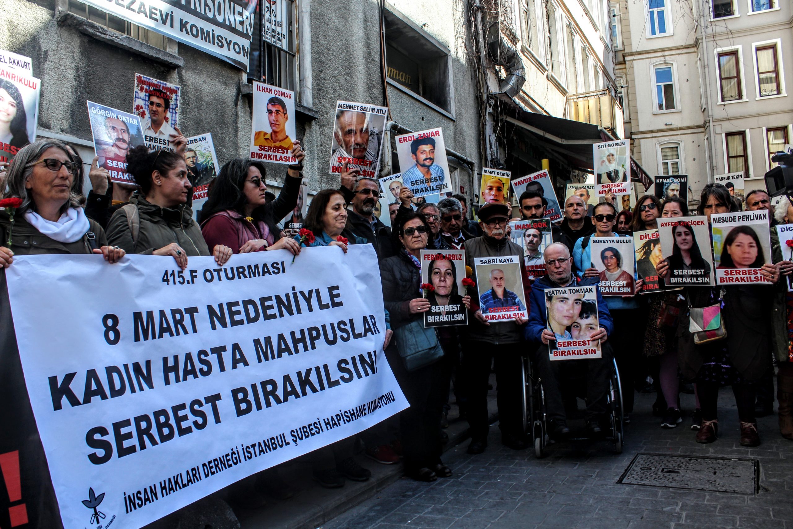 İHD İstanbul Şubesi Hapishane Komisyonu, hasta tutsakların durumuna dikkat çekmek için her cumartesi düzenledikleri F Oturumu’nun 415’incisini 8 Mart Dünya Kadınlar Günü dolayısıyla hasta kadın mahpuslar için gerçekleştirdi.