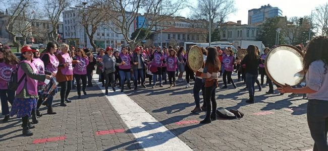 DİSK Kadın Komisyonu, 8 Mart öncesi Kadıköy İskele Meydanı’nda bir basın açıklaması yaparak çalışma yaşamında şiddet ve tacizin ortadan kaldırılması için ILO’nun 190 sayılı Şiddet ve Taciz Sözleşmesi’nin onaylanması için mücadele edeceklerini belirtti.