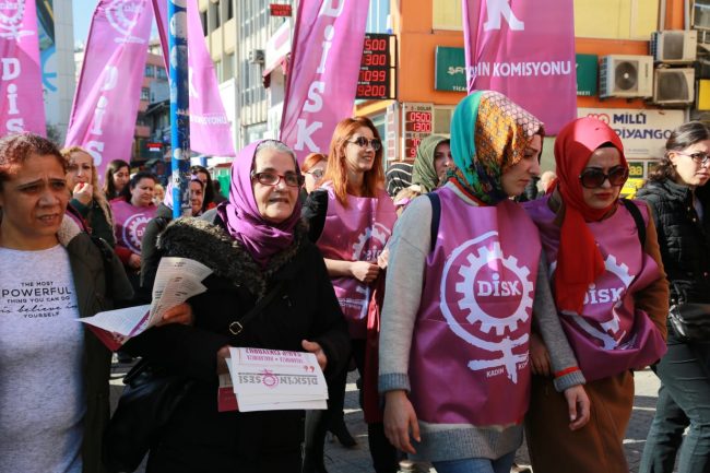 Bizler, DİSK’li kadınlar olarak, kadınlar için yaşanabilir bir ülke istiyoruz, kendimizi güvende hissedebileceğimiz bir ülke istiyoruz. Bizler tüm kadınları, yaşamlarında maruz bırakıldıkları eşitsizliğe ve ayrımcılığa karşı mücadeleye çağırıyoruz.