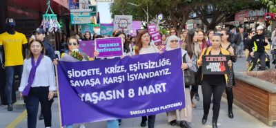 Kadınlar, Tarsus Kadın Platformu’nun çağrısı ile Halk Eğitim Merkezi önünde toplanıp Yarenlik alanına yürüyüş gerçekleştirdi. Yürüyüşten sonra basın açıklaması yaptı. Basın açıklamasında barışa, kadın cinayetlerine ve ekonomik krize sıkça vurgu yapıldı.
