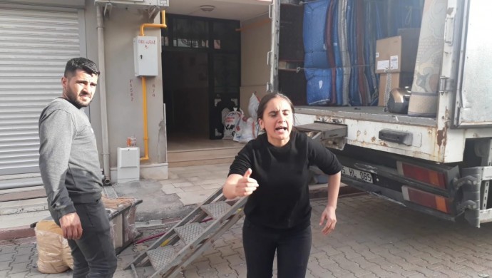 Doku ailesinin tepkileri üzerine eşyalar indirilerek nakliye aracı evin önünden ayrıldı.