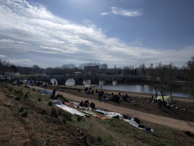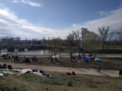Buradaki insanların çoğu Suriye’den Türkiye’ye geldiler ve burada karşı kıyıya geçebilecekleri umudu ile günlerdir buradalar. Bir çoğu Yunanistan tarafına geçmişler ancak özellikle maskeli ve sopalı kişiler tarafından dövülerek ve sövülerek geri gönderilmişler. Birden fazla yere aslında sürgün ediliyorlar. Bir yerde konakladıkları zaman hızla gelip bu yeri değiştirmeleri gerektiği söyleniyor. Dün akşam yoğun yağmur altında tüm eşyaları ıslanmış halde bir pazar yerine sığınmış ve gün içinde o pazar yerini boşaltmaları istenmiş.