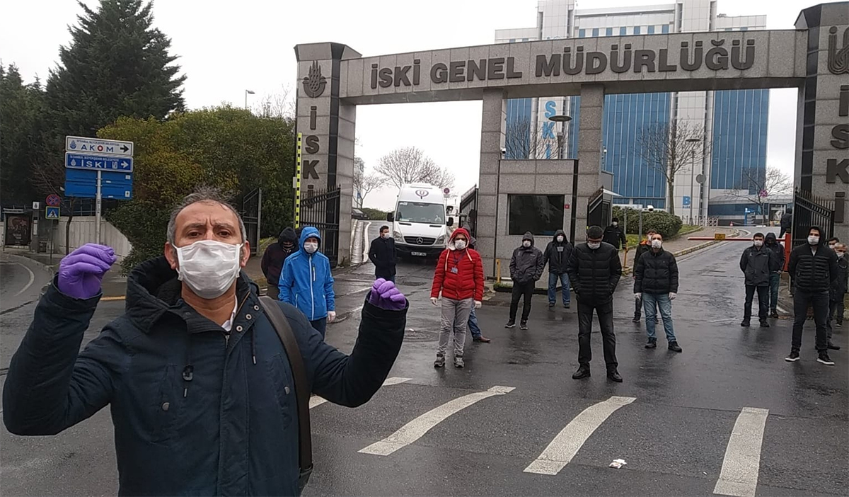 When refused a meeting, the workers then went to the gates of ISKI offices and stated their demands. The union representative Süleyman Keskin said, “The workers are knocking on the doors of at least 700 people a day without any protection. However, when we come to discuss these health issues they refuse to get together for ‘health reasons.’ “