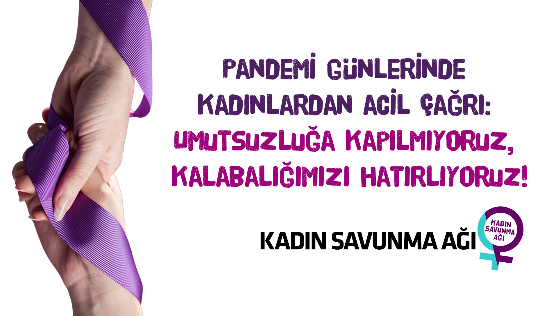 Kadın Savunma Ağı koronavirüs pandemisine yönelik alınması gereken önlemleri ve acil taleplerini yayımladı. “Ne taleplerimizden, ne haklarımızdan, ne de hayatımızdan vazgeçiyoruz” ifadeleriyle başlayan talepler; şiddetten korunmaya yönelik düzenlemeler, salgına karşı güvenli sığınma evleri, yaşlılara kamusal destek, cezaevlerindeki kadın ve çocukların güvenliği gibi bir dizi başlığı içeriyor.