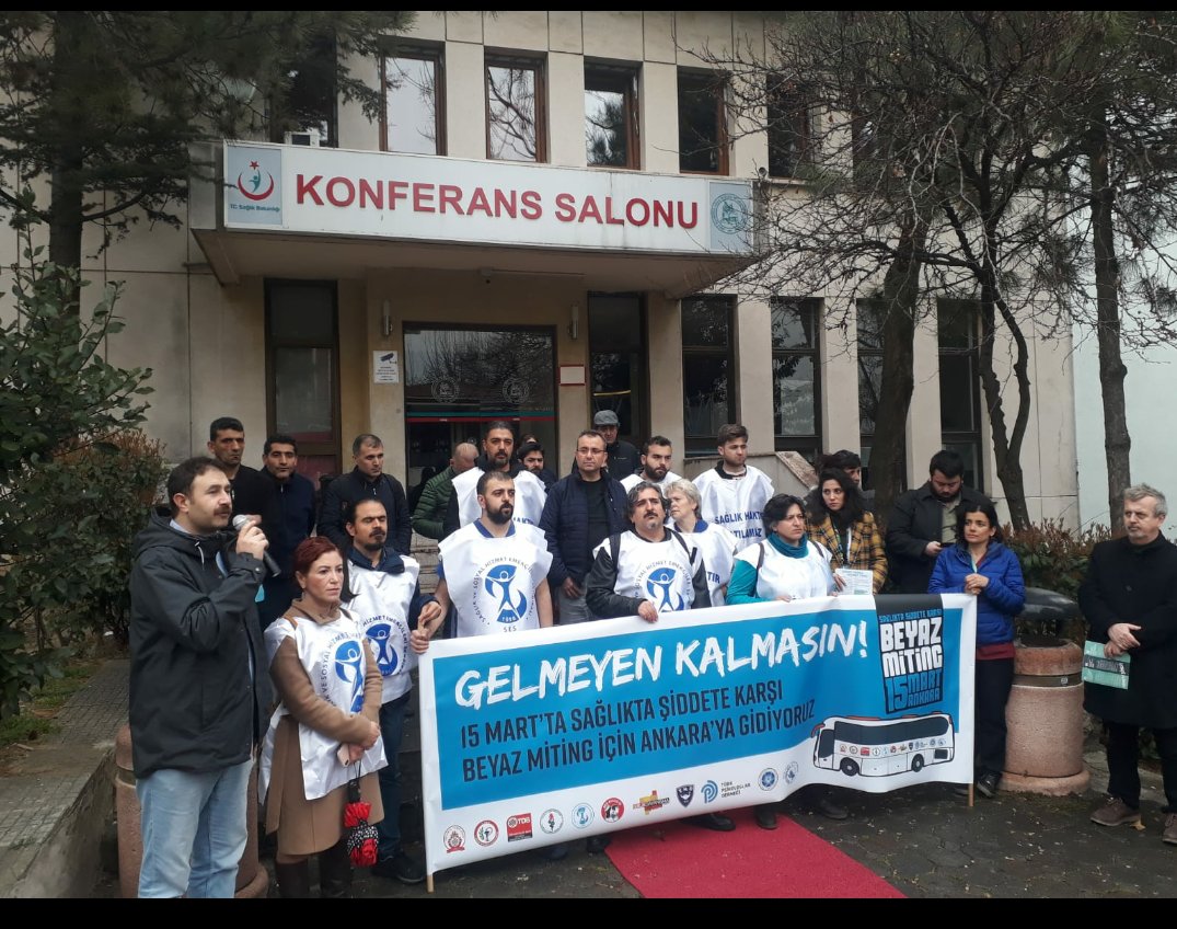 Sağlık emek, meslek örgütleri, 15 Mart’ta Ankara’da yapacakları “Beyaz Mitinge” çağrı için Şişli Etfal Eğitim ve Araştırma Hastanesi önünde basın açıklaması yaptı. Sağlıkta şiddet son buluncaya kadar mücadele edeceklerini vurgulayan sağlık emekçileri, 15 Mart’ta Ankara’da gerçekleşecek sağlıkta şiddete karşı beyaz miting için İstanbul’da 14 Mart gecesi otobüslerin kaldırıldığı söylenerek, sağlık çalışanları davet edildi.
