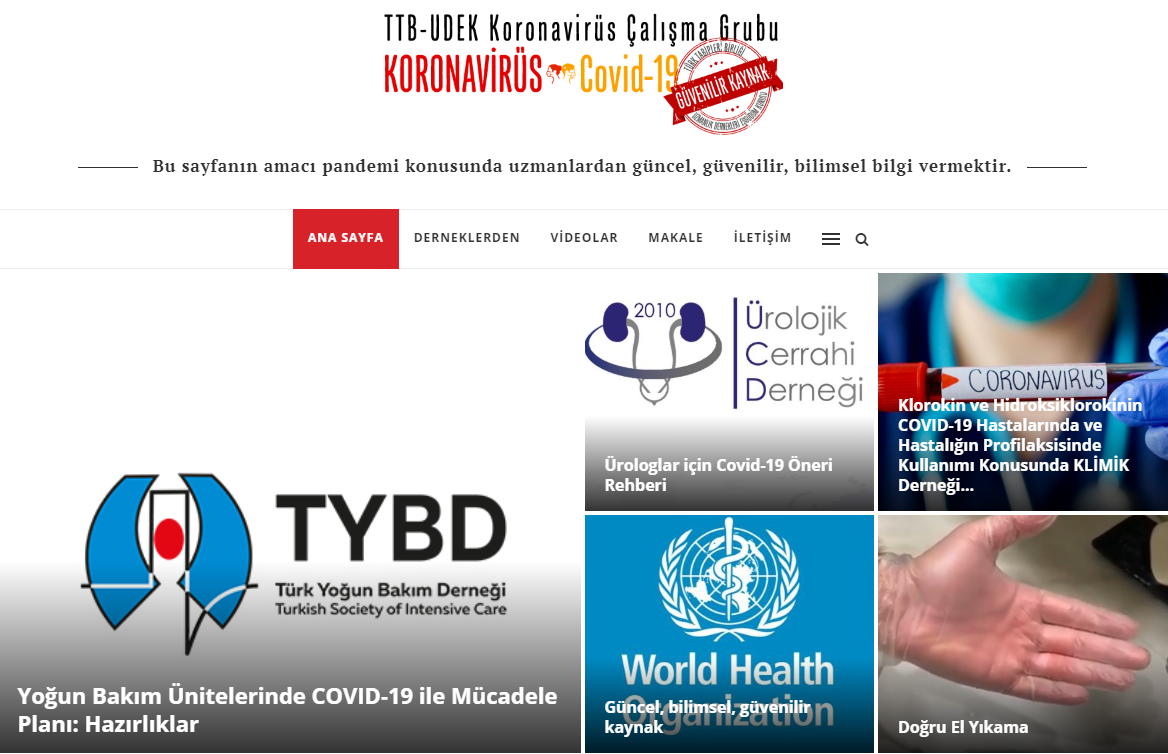 Koronavirüs Pandemisi Çalışma Grubu, pandemi konusunda bilimsel içeriği üye uzmanlık dernekleri ve uzmanlarca onaylanmış bilgi ve video, afiş gibi materyallerin paylaşımına söz konusu internet sitesi üzerinden başladı. Hekimler, sağlık çalışanları ve kamuoyu, TTB UDEK tarafından onaylanmış güncel, güvenilir, bilimsel kaynaklara hekimlik.org/koronavirus ve www.ttb.org.tr/udek/ bağlantılarından ulaşabilecek.