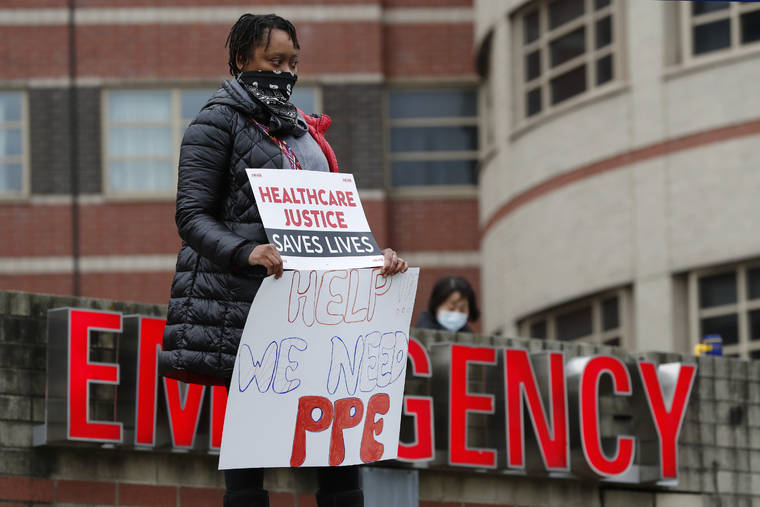 New York’un yerel belediyesinin sahibi olduğu Jacobi Hastanesi önünde biriken hemşireler bir basın toplantısı yapmış, koronavirüsten hayatını kaybeden baş hemşire Kious Kelly’yi anarak kendilerine Kişisel Koruyucu Ekipmanlar verilmediğinden şikayetçi olmuşlardı.