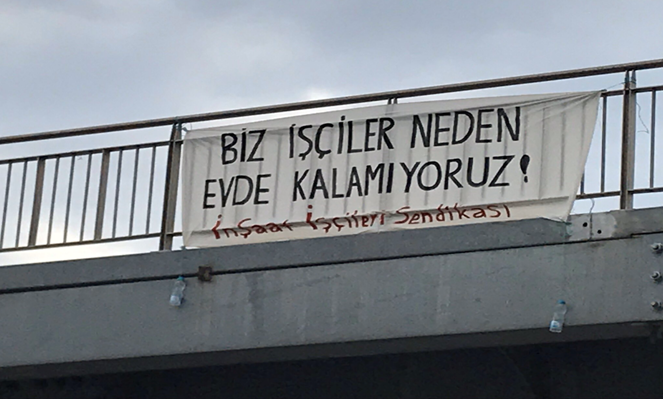 Çalışmak zorunda olan milyonlarca işçi ise sabahın erken saatlerinde kalabalık işçi servisleriyle işe gidiyor, hijyenik olmayan yemekhaneleri ve dinlenme alanlarını kullanmak zorunda kalıyor. İnşaatlarda, hastanelerde, fabrikalarda, tersanelerde, belediyelerde çalışan işçiler işyerinde alınmayan önlemlere karşı seslerinin duyulmasını istiyor. İşçiler iktidarın “Evde kal” çağrılarına karşı “Biz neden evde kalamıyoruz?” diye soruyor.