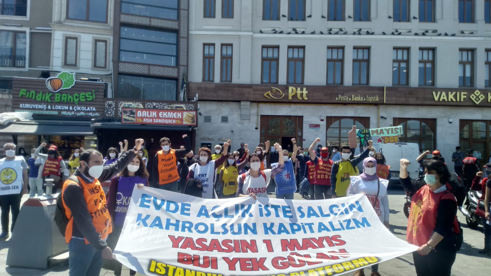 Platform, salgın nedeniyle 1 Mayıs çalışmalarının kısıtlı olarak devam ettirilebildiği için, 1 Mayıs için hazırlanan ve yaygın dağıtılamayan bildiriyi kentin büyük meydanlarında okuyarak halkla buluşturuyor.