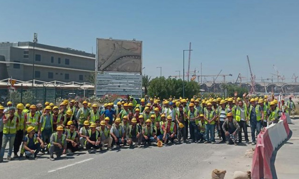 Limak Holding’in yürüttüğü Kuveyt Uluslararası Havalimanı yeni terminal binası inşasında çalışan inşaat işçileri direnişe geçti